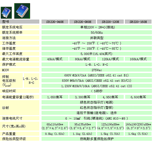 用于单相交流线路 Surge-box H系列