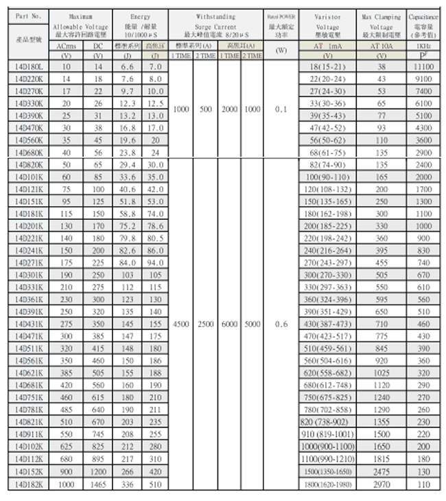 14D系列压敏电阻应用于各种通讯模块、电源和家电等产品中