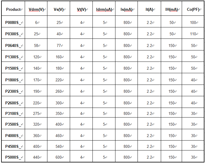 ●Listed SIDACtors are bi-directional. All electrical parameters & surge ratings apply to forward and reverse polarities。