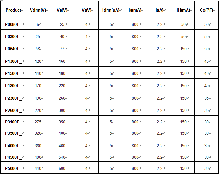 抗雷击等級:@10/700μs;PXXXOTA:2KV,PXXX0TB:4KA