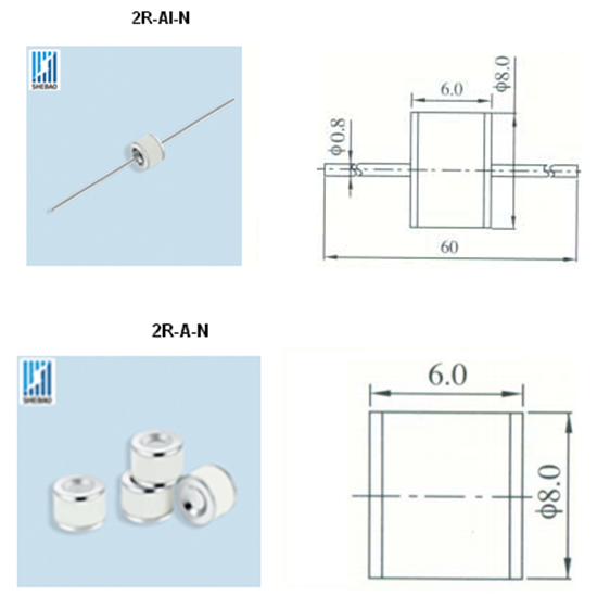 不带引脚:2R75A-N;2R90A-N; 2R150A-N;2R230A-N; 2R350A-N;2R470A-N;2R600A-N; 2R800A-N;2R1200A-N; 2R2500A-N;